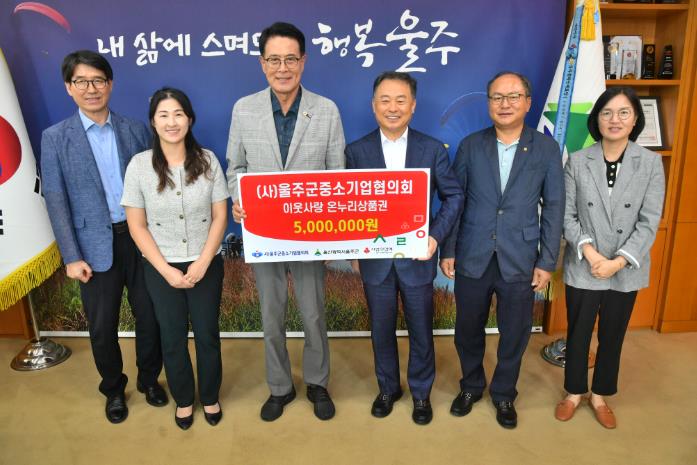 이순걸 울주군수는 “온누리상품권을 기탁해주신 울주군중소기업협의회 원경연 회장 및 회원들께 감사의 뜻을 전한다”며 “기업의 지역사회 기여가 울주군 발전에 큰 힘이 될 것”이라고 밝혔다.