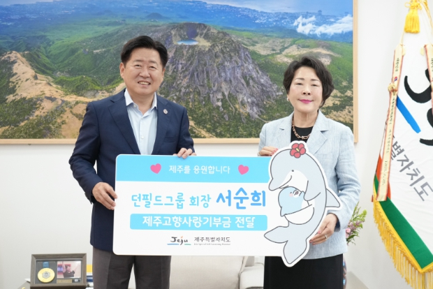 제주특별자치도는 서순희 던필드그룹 회장이 12일 오후 도청을 찾아 고향사랑기부금 1,000만원과 취약계층 지원 기부금 500만원 등 총 1,500만원을 기부했다고 밝혔다.