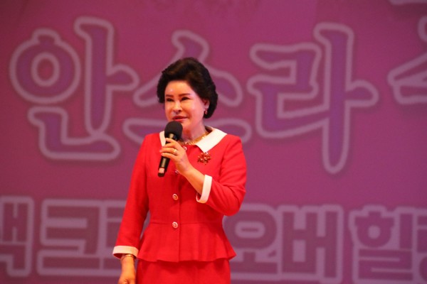 ▲ 신현옥 목사가 명창 안소라 효(孝) 힐링콘서트 특별축사를 하고있다 |