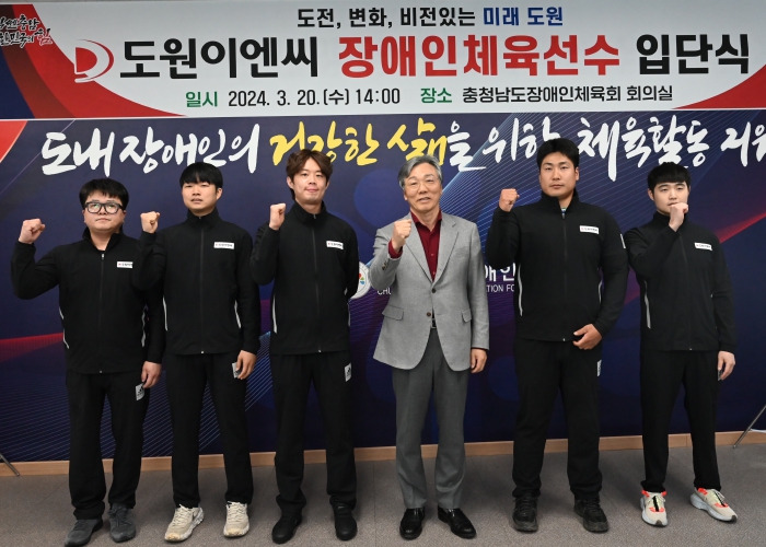 이날 도 장애인체육회 회의실에서 열린 채용 기념식에는 성우종 ㈜도원이엔씨 회장과 이건휘 도 장애인체육회 부회장, 조향현 한국장애인고용공단 이사장 등이 참석해 선수들을 격려하고 앞으로의 활약을 응원했다.