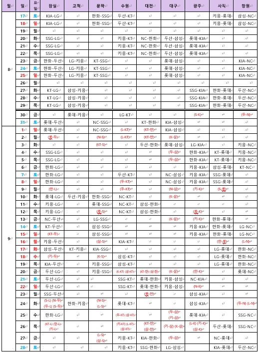▲ 2024 KBO 정규시즌 잔여 경기 재편성 일정 |
