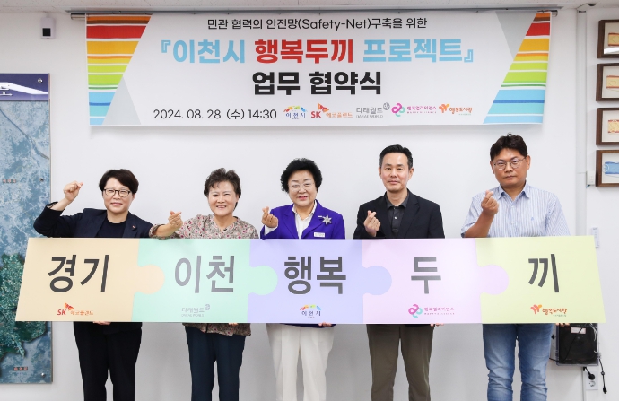 [뉴스서치] 이천시는 28일 시청 5층 다올실에서 SK에코플랜트, 다래월드, 행복얼라이언스 사무국(행복나래(주)), 행복도시락 사회적협동조합과 행복 두 끼 프로젝트 추진을 위한 업무협약을 체결했다.