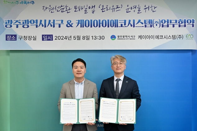 [뉴스서치] 광주광역시 서구가 8일 KI에코시스템㈜와 자원선순환 모바일 앱‘온리유즈’구축을 위한 업무협약을 체결했다.