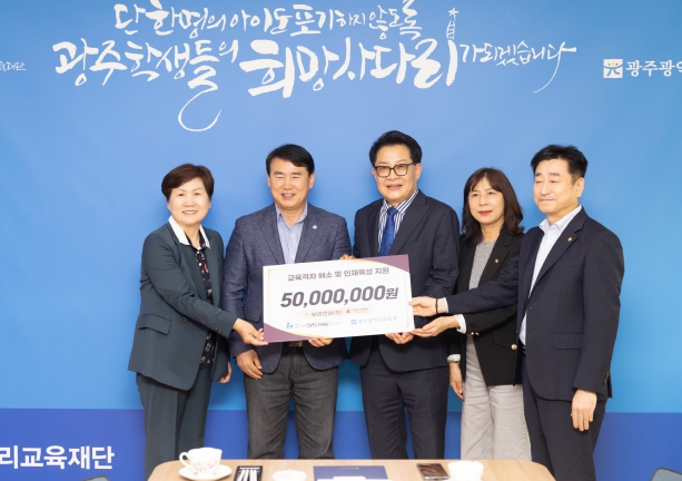 [뉴스서치] 광주광역시교육청이 설립한 광주희망사다리교육재단이 26일 보광건설(주) 등으로부터 6천만원의 기부금을 전달받았다고 밝혔다.