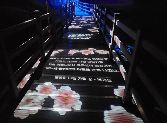 실제로 숲속길, 빛의나무 산책로, 꽃피는 갯바위, 데크길, 폭포 등 6개 구역으로 나눠 박재삼 시인의 천연의 바람을 모티브로한 꽃피는 갯바위, 반딧불이 숲속해안가, 물결과 징검다리 등을 연출한다.