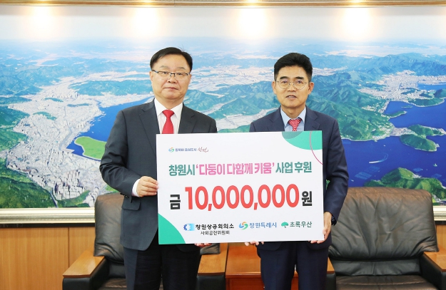 이날 기탁식에는 홍남표 창원시장, 창원상공회의소 사회공헌위원회 박정우 위원장, 송정아 부위원장, 백시출 상근부회장, 초록우산 어린이재단 조유진 본부장 등이 참석했다.