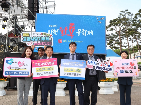 사천시 김성규 부시장과 정읍시 송금현 부시장은 지난 26일 열린 제26회 사천와룡문화제 개막식에서 고향사랑기부금 2000만 원씩을 상호 전달했다.