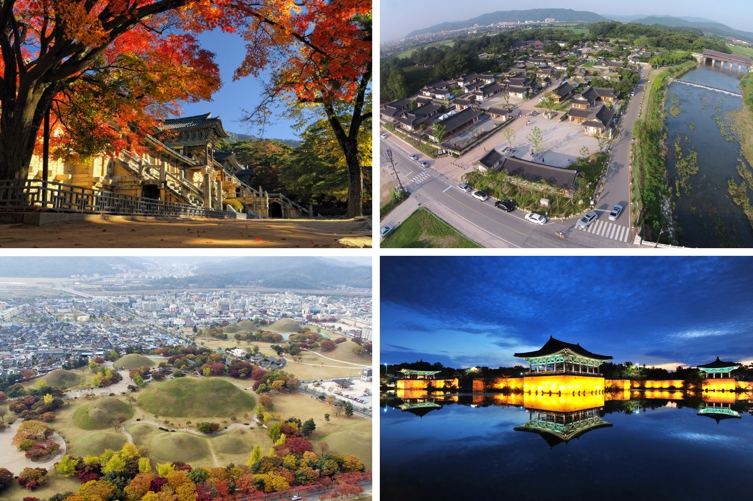 ▲ 불국사(좌측상단), 교촌마을(우측상단), 대릉원(좌측하단), 동궁과월지(우측하단) |