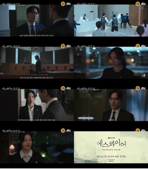 오는 8월 2일(토) 첫 방송될 JTBC 새 토일드라마 ‘에스콰이어: 변호사를 꿈꾸는 변호사들(이하 에스콰이어)’(극본 박미현/연출 김재홍/제작 ㈜비에이엔터테인먼트, SLL, 스튜디오S /공동제작 ㈜스토리오름)에서 3차 티저 영상을 공개, 여러 소송을 마주하며 함께 나아가는 윤석훈과 강효민을 통해 깊은 울림을 전하고 있다.