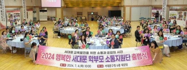 [뉴스서치] 서대문구는 최근 구청 대강당에서 ‘서대문 교육 발전을 위한 소통과 공감의 시간’이란 주제로 ‘2024 행복한 서대문 학부모 소통지원단 출범식’을 가졌다고 8일 밝혔다.