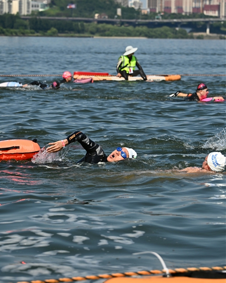 [뉴스서치] 오세훈 서울시장이 지난 1일 뚝섬한강공원에서 열린 「제1회 쉬엄쉬엄 한강 3종 축제」에 참여해 시민들에게 마음 편히 수영할 수 있는 한강의 깨끗한 수질을 알리는 데 앞장선 가운데, 2일에는 ‘수영’ 상급자 코스인 잠실수중보 남단에서 북단까지 한강 1km를 시민들과 함께 종단했다.