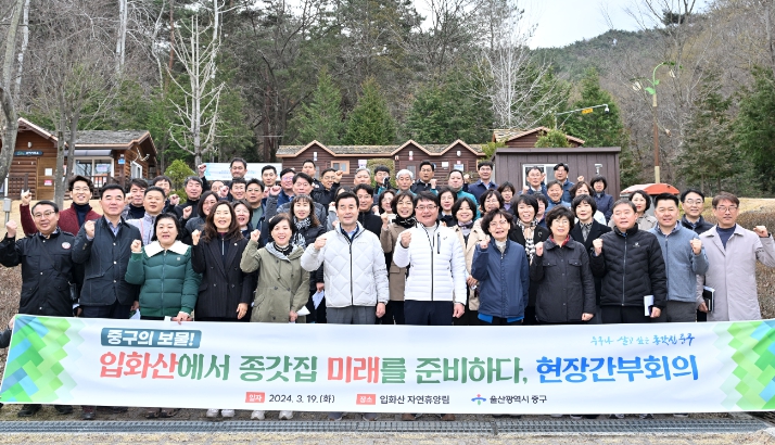 [뉴스서치] 울산 중구가 3월 19일 오전 10시 입화산 자연휴양림에서 현장 간부회의를 진행했다.