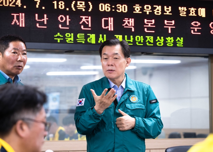 현재 수원시는 재난안전대책본부를 비상 2단계로 운영하고 있으며, 하천 진출입로를 전면 차단하고 예찰 활동을 하고 있다. 시청 본부 20명, 각 구·동 112명이 재난상황 비상근무를 하며 집중호우 상황을 모니터링하고, 상황이 발생하면 즉시 대응하고 있다.