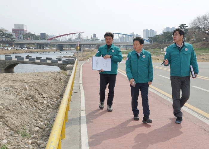 신 부시장은 무심천 변에 마련한 현장본부를 방문해 벚꽃개화기 준비상황을 살핀 후 청주대교~제1운천교 구간의 하천시설물을 점검했다.