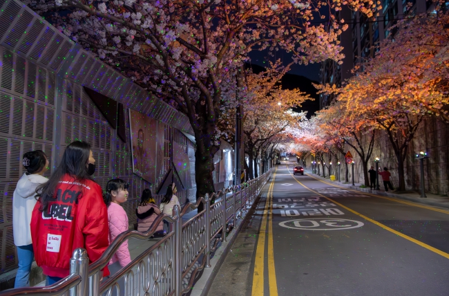 ▲ 부산 동구, 아르미나 아파트 앞 벚꽃길 야간경관조명 점등 |