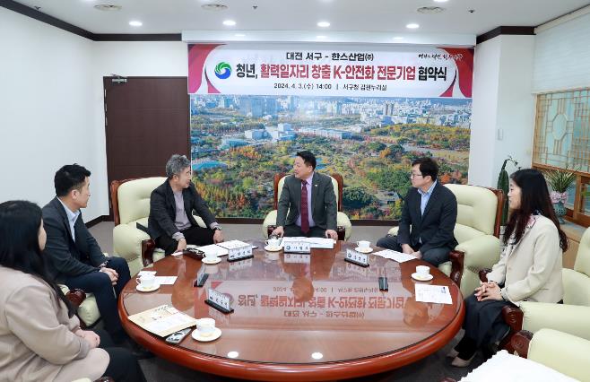 [뉴스서치] 대전 서구는 3일 구청 갑천누리실에서 K-안전화 전문기업인 한스산업과 ‘청년, 활력일자리 창출 협약’을 체결했다.