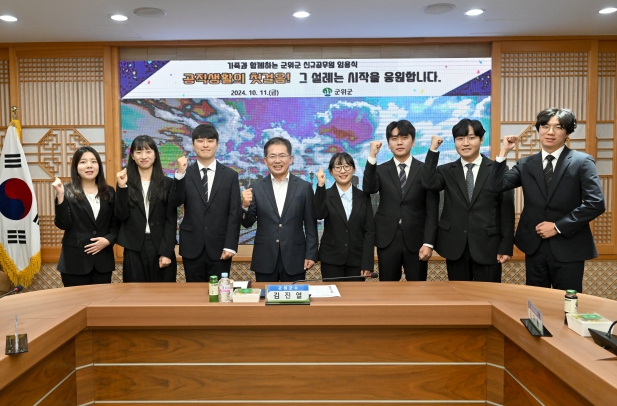 이번 신규공무원 임용식은 2024년 제2회 대구광역시 지방공무원 임용시험 합격자 중 군위군으로 임용받은 신규공무원을 대상으로 임용장 수여, 신규공무원 선서, 간담회 순으로 진행됐다.