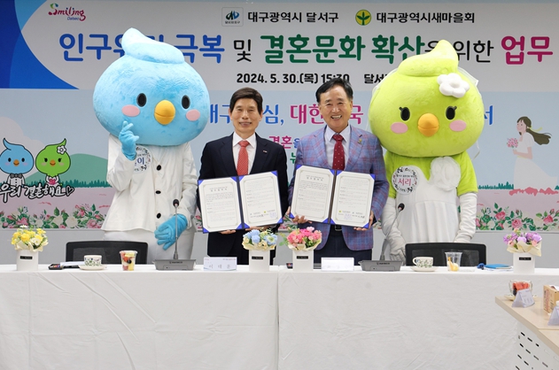 [뉴스서치] 대구 달서구가 30일 구청 회의실에서 대구광역시새마을회와 초저출생 인구 위기에 공동 대응하고, 긍정적 결혼(출산)문화 확산 등을 위한 업무협약을 체결했다.