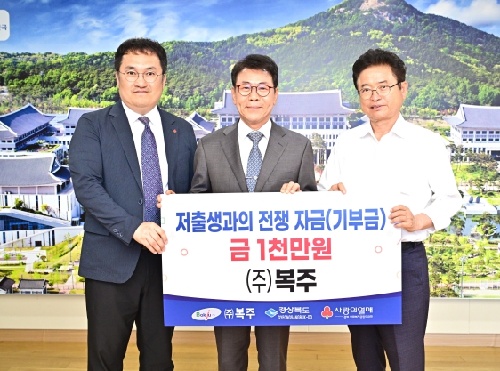 안전한 물탱크 복합 신소재(SPEP 일체형 패널) 생산업체인 ㈜복주(대표 조태영)는 17일 경북도청을 방문해 저출생 극복을 위해 써달라며 성금 1,000만원을 기탁했다.