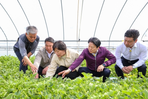 이번 방문은 본격적인 참외 출하가 시작됨에 따라 현장의 생생한 참외 작황을 점검하고 수급 안정을 위한 생육관리 및 출하 확대를 당부하기 위해 이루어졌다.