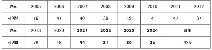 ▲ 삼성 오승환 연도별 세이브(7/17 기준) |