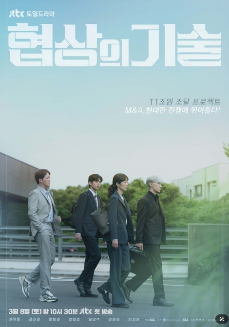 차가운 이성과 뜨거운 감성으로 협상을 주도하는 M&A 팀의 11조원 조달 프로젝트가 펼쳐질 JTBC 새 토일드라마 ‘협상의 기술’은 오는 3월 8일(토) 밤 10시 30분에 첫 방송된다.