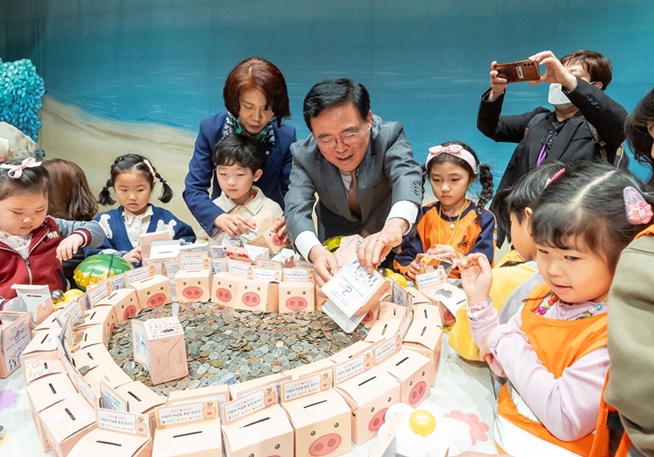 전달식은 지역 어린이집·유치원 원아와 보육교사 등 400여 명이 참석한 가운데 ▲저금통 전달식 ▲어린이 뮤지컬 공연 관람 등의 순으로 진행됐다.