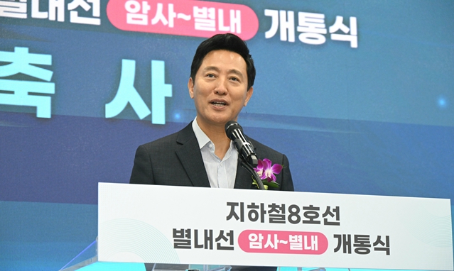 [뉴스서치] 오세훈 서울시장이 9일 14시, 별내역 대합실에서 열린 ‘8호선 연장(별내선) 개통식’에 참석했다.