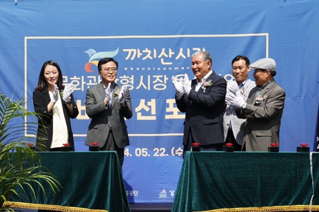 구는 22일 오후 2시 까치산시장에서 진교훈 구청장을 비롯해 김덕수 까치산시장 상인회장, 상인, 주민 등 100여 명이 참석한 가운데 ‘문화관광형시장 선포식’을 개최했다.