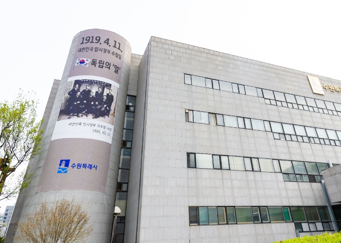 [뉴스서치] 수원시가 제105주년 대한민국 임시정부 수립을 기념해 시청 본과 외벽에 대한민국 임시정부 국무원 요인들의 사진을 인쇄한 대형 현수막을 게시했다.