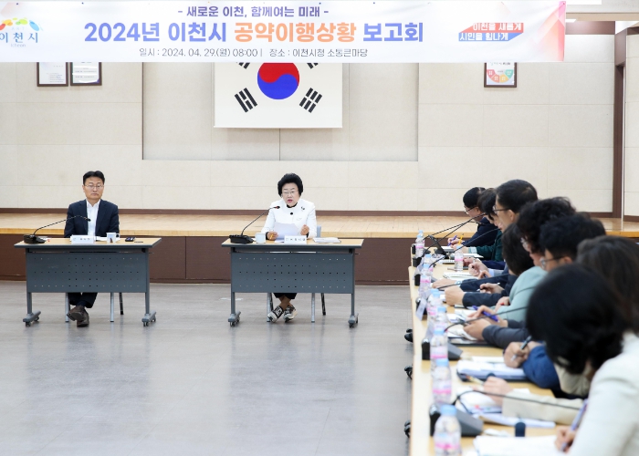 [뉴스서치] 이천시는 29일 시청 대회의실에서 ‘2024년 공약이행상황 보고회’를 개최해 공약사업 이행상황을 점검했다.