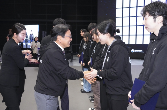입교식은 환영사와 축사, GCC사관학교의 비전과 협력기업 소개, 교육생 입학증 및 학생증 수여. 교육생 교육 및 소통 순으로 진행됐다. 강 시장은 GCC사관학교 1기 대표교육생에게 학생증을 수여하고 격려했다.