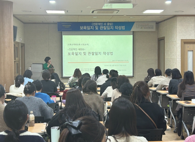 [뉴스서치] 울산 중구육아종합지원센터가 지난 3월 14일 오후 5시 울산 중구육아종합지원센터 지하 1층 강당에서 어린이집 신입교사 60여 명을 대상으로 ‘보육일지 및 관찰일지 작성법’ 교육을 진행했다.