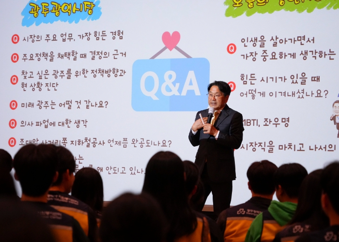 강기정 시장은 이날 청년들을 만나 ‘청년이 찾아오는 도시 광주로’를 주제로 청년정책 특강을 진행했다. 청년정책을 한 눈에 볼 수 있는 ‘청년정책플랫폼’, 해외 한달살기 프로그램인 ‘청년갭이어’, 창업·일자리·주거 정책 등에 대해 이야기했다.