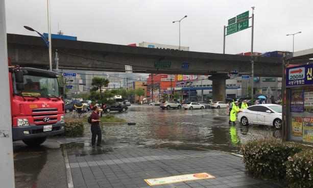 ▲ 사상구청교차로 일원 침수 피해 모습 |
