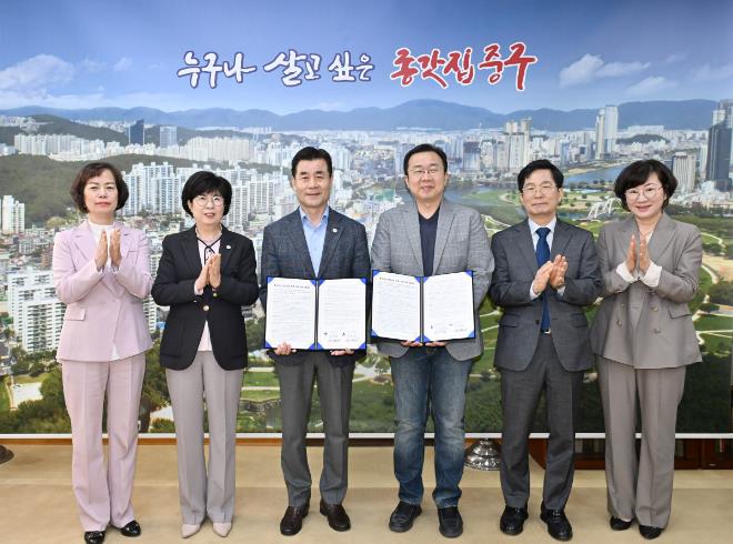 이날 협약식에는 김영길 중구청장과 이호상 사회복지법인 밝은미래복지재단 대표이사, 서임량 함월노인복지관장이 참석했다.