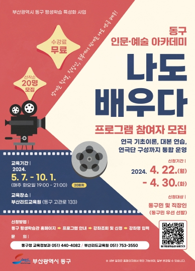 ▲ 부산 동구, 인문·예술 아카데미 '나도 배우다'프로그램 참여자 모집 |