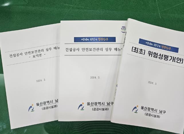 [뉴스서치] 울산 남구는 지난 5일 전국 최초로‘건설공사 안전보건관리 실무 매뉴얼’작성을 완료하고, 업무담당자의 참고서로 활용한다고 밝혔다.