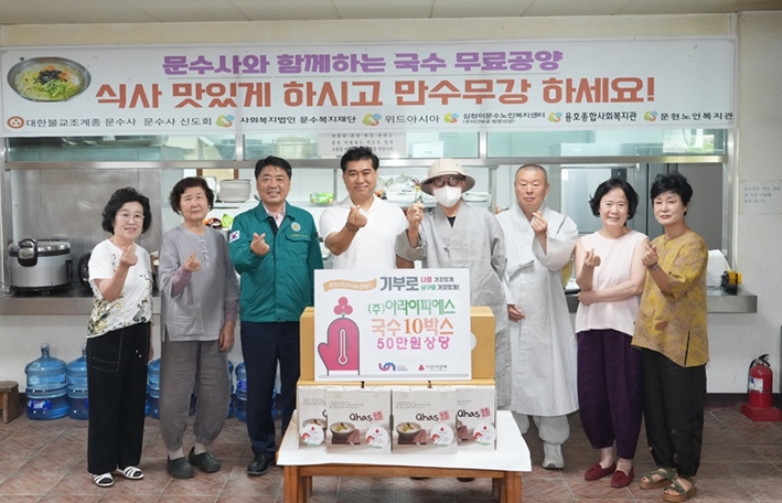 오은택 남구청장은 “따뜻한 마음을 전해주신 박창희 대표님과 지역 주민에게 국수 무료 공양 나눔을 실천해 주신 문수사에 감사드리며, 우리 구에서도 어르신들이 편안하고 행복한 노후생활을 보내실 수 있도록 최선을 다하겠다”고 밝혔다.
