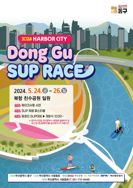 [뉴스서치] 부산 동구는 다가오는 5월 24일부터 26일까지 3일간 북항 친수 공원 경관 수로에서 “2024 하버시티 동구 북항컵 SUP RACE”를 개최한다.