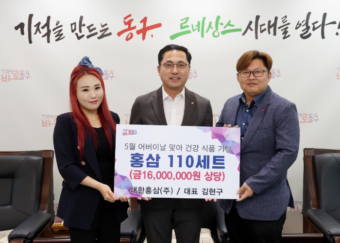 박희조 동구청장은 “이웃을 위해 따뜻한 나눔을 실천해 주신 김현구 대표에게 감사드린다”며 “기탁해 주신 홍삼은 지역 경로당과 취약계층 가정에 잘 전달하겠다”고 말했다.