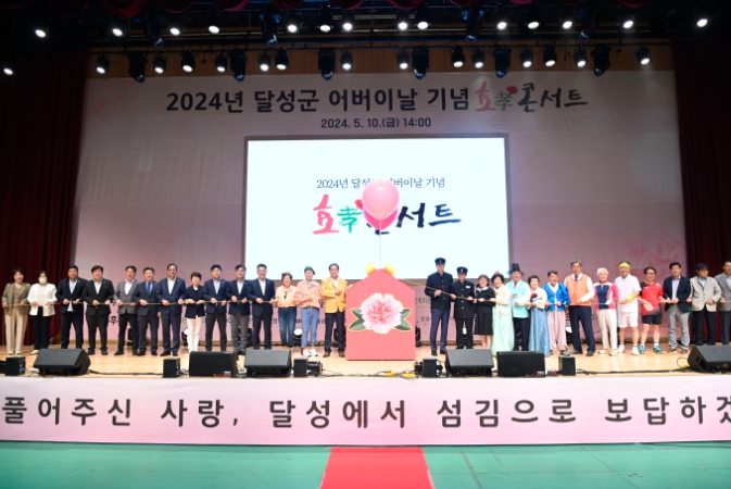 [뉴스서치] 달성군은 지난 10일 달성군민체육관에서 노인복지관 3개소 연합 2024년 달성군 어버이날 기념‘효(孝)콘서트’를 개최했다고 밝혔다.