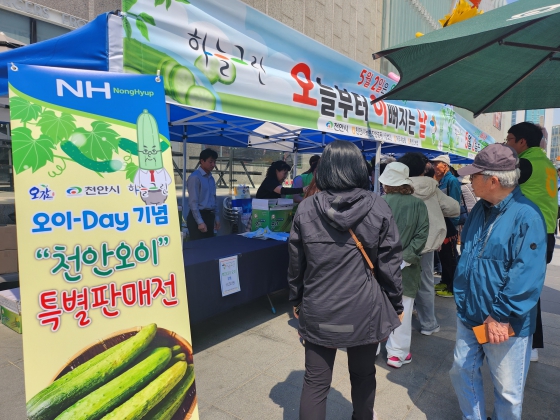 [뉴스서치] 천안시는 지역 대표 특화품목인 ‘오이’의 우수성을 홍보하기 위해 2일 아라리오 광장에서 ‘오이데이 행사’를 개최했다.