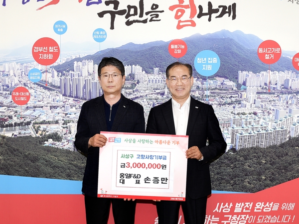 [뉴스서치] 부산 사상구는 지난 21일 홍일F&D 손종만 대표가 고향사랑기부금 300만 원을 기부했다고 밝혔다.