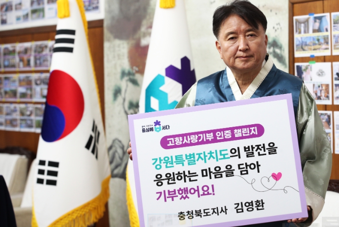 [뉴스서치] 김영환 충북도지사가 11일 고향사랑기부제 활성화를 위한 고향사랑기부 인증 릴레이 챌린지에 동참했다.