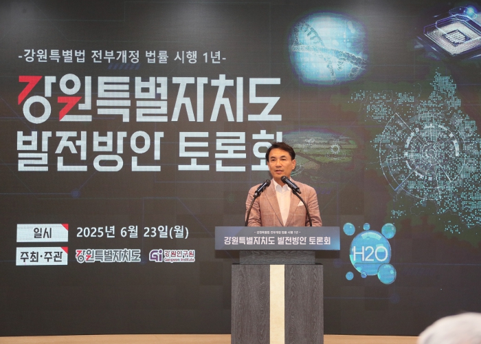 [뉴스서치] 강원특별자치도는 '강원특별법' 전부개정 법률 시행(‘24.6.8.) 1년을 맞아 4대 규제 해소와 자치권 확대 등 특별법에 반영된 특례활용 성과를 돌아보고 향후 강원특별자치도의 발전방향을 모색하기 위한 ‘강원특별자치도 발전방안 토론회’를 개최했다고 밝혔다.