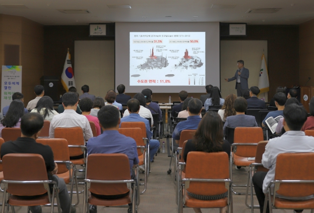이날 심포지움 첫 번째로 서울시립대 도시공학과 정석 교수가 ‘소도시의 창의성과 혁신성’이라는 주제로 발표를 진행했다.
