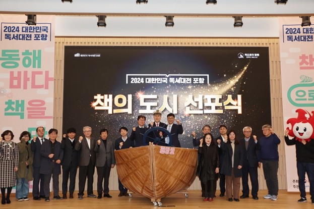 이날 행사는 2024 대한민국 독서대전의 주제를 담은 샌드아트 공연으로 문을 열었으며, 포항시를 올해 책의 도시로 선포한 후 상징기 전달식이 진행됐다.