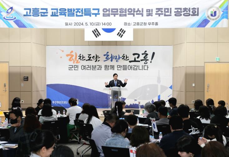 [뉴스서치] 고흥군은 고흥교육지원청과 함께 10일 군청 우주홀에서 교육부의 교육발전특구 시범지역 지정을 위한 주민공청회를 개최했다.