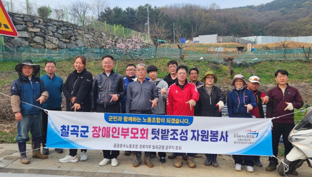 [뉴스서치] 민주노총 공공운수노동조합 경북지역지부 칠곡군청공무직분회는 지난 6일 지역 발달장애인을 위한 다함센터를 찾아 텃밭 조성을 위한 터다지기 자원봉사활동을 실시했다.